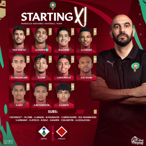 الإعلان عن التشكيلة الرسمية للمنتخب المغربي ضد منتخب ليسوتو