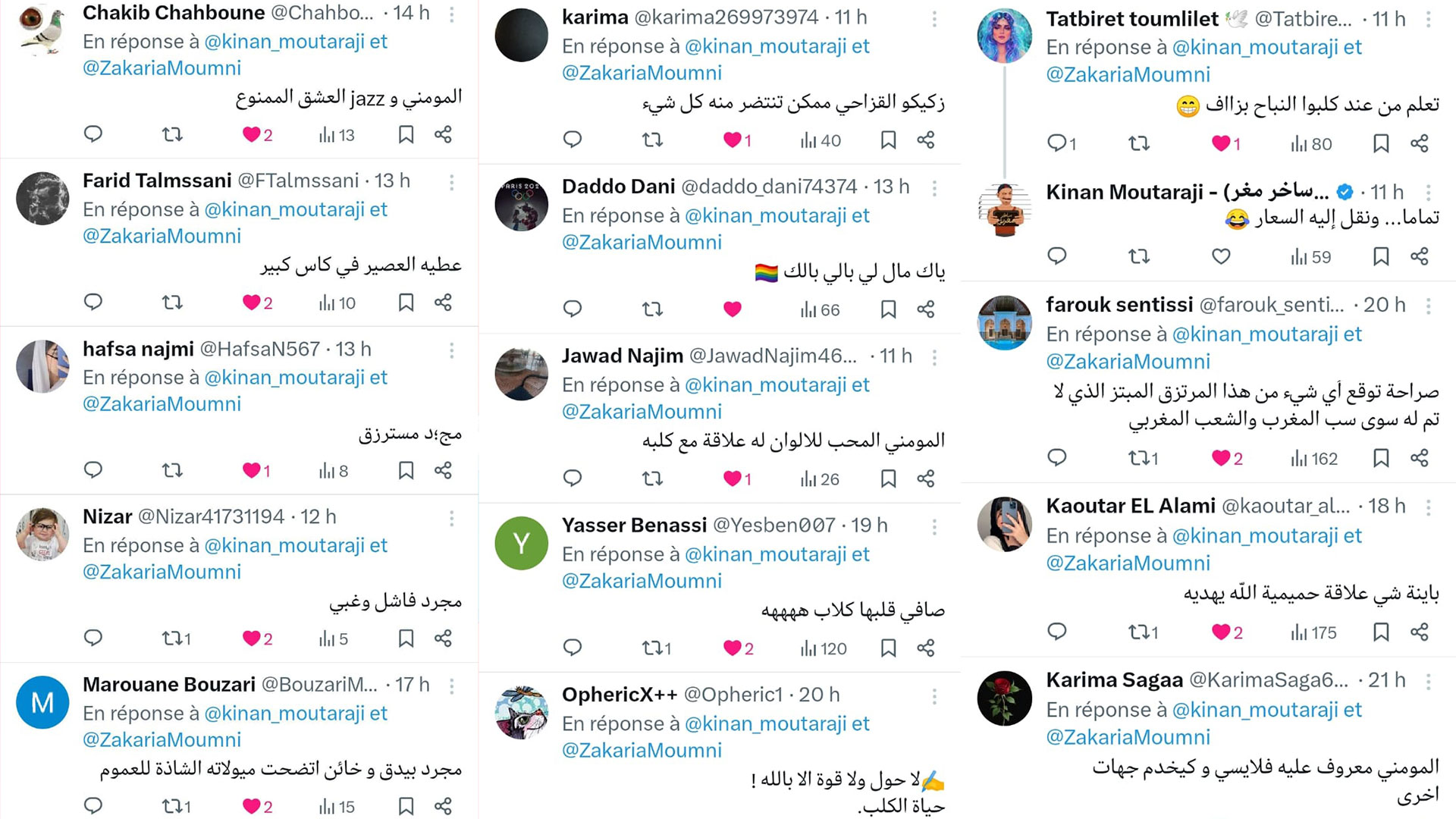 وقد تفاعل عدد كبير من رواد مواقع التواصل الاجتماعي مع هذه التغريدة، معبرين عن عدم دهشتهم لهذا الأمر لاسيما أن المدعو زكرياء مومني معروف عنه شذوذه الجنسي.