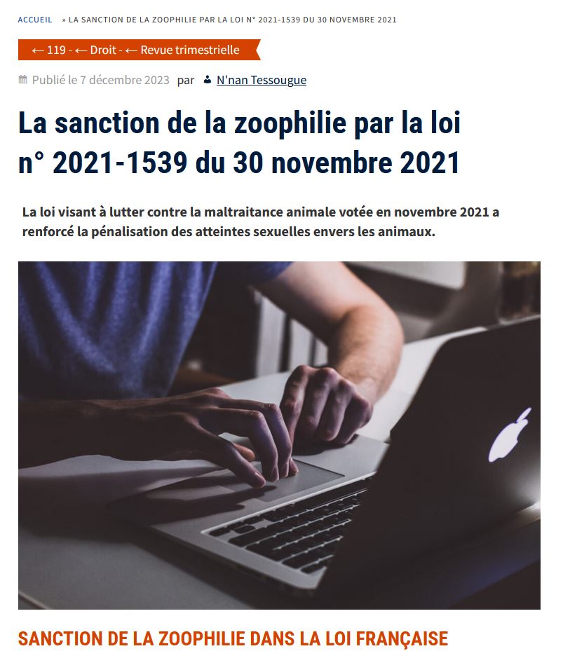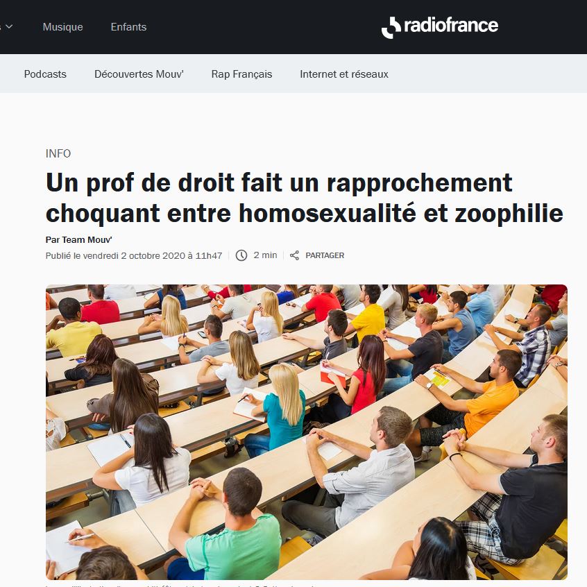 استعان كنان كذلك بدراسة قام بها أستاذ للقانون بجامعة “Paris 1 Panthéon-Sorbonne”، أكد فيها أن هنالك علاقة وطيدة بين “المثلية الجنسية” و”الزوفيليا”، حيث أن أي شخص مثلي باستطاعته بكل سهولة أن يتجه نحو “الزوفيليا” لكونها ممارسة شاذة شأنها شأن “المثلية”.