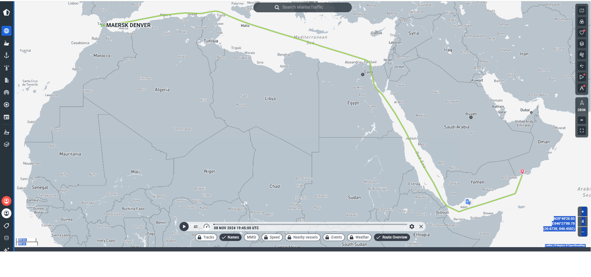 وحسب موقع “مارين ترافيك” (Marinetraffic) لتتبع السفن، فقد غادرت السفينة ميناء نيويورك بتاريخ 31 أكتوبر ضمن خط إبحار محدد نحو ميناء “صلالة” بسلطنة عمان، مع توقف تقني للإفراغ وإعادة الشحن بمناء طنجة المتوسط، حيث تملك الشركة الدنماركية العملاقة محطتين للشحن والتخزين بعد أن حولت جزء من عملياتها من ميناءي “الجزيرة الخضراء” وبرشلونة نحو ميناء “طنجة المتوسط” شمال المغرب.