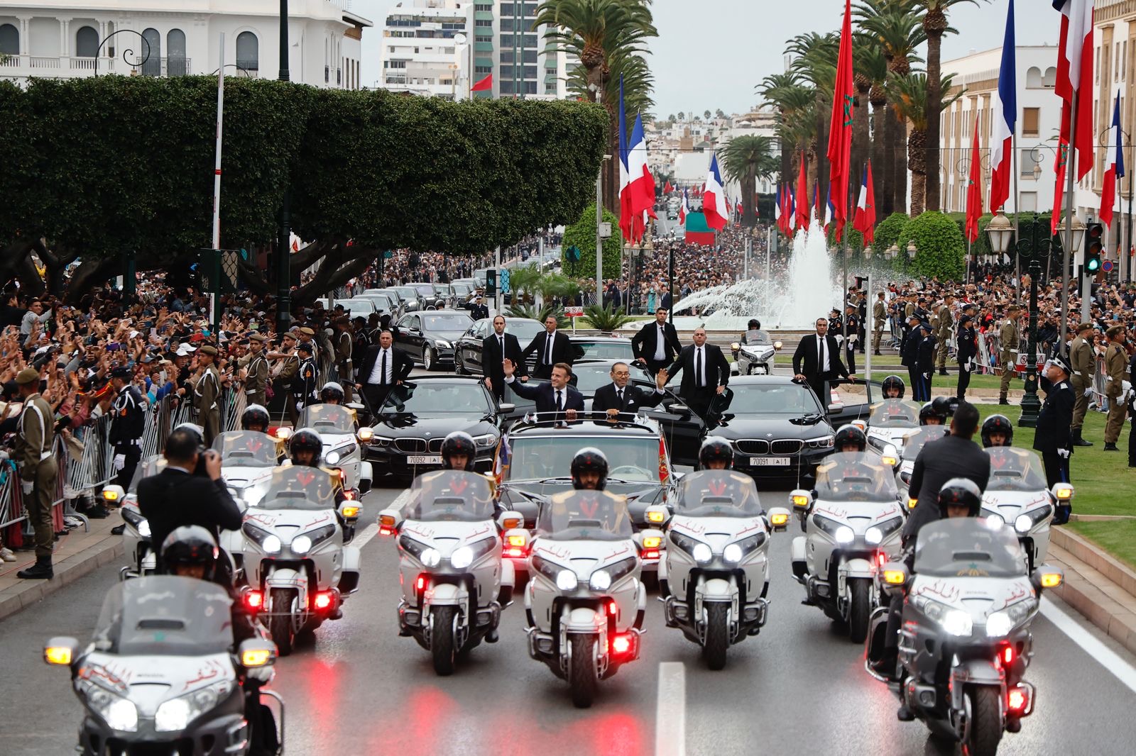 وتبادل المئات من المواطنين المغاربة، الذين اصطفوا على طول المسار الذي سلكه الموكب في شوارع الرباط التي تزينت بالأعلام المغربية والفرنسية، التحايا مع جلالة الملك والرئيس الفرنسي.