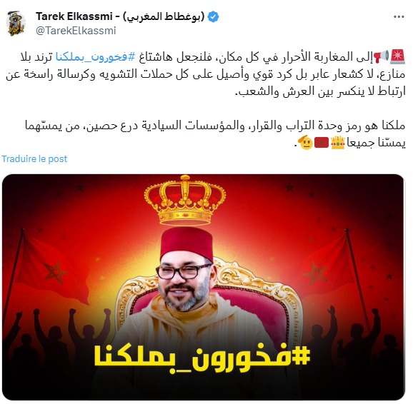 ويعكس انتشار هاشتاغ “فخورون بملكنا” الروح الوطنية العالية لدى فئات واسعة من المجتمع المغربي، ويؤكد أن الالتفاف حول الملكية لا يزال راسخًا رغم كل محاولات التشويش.