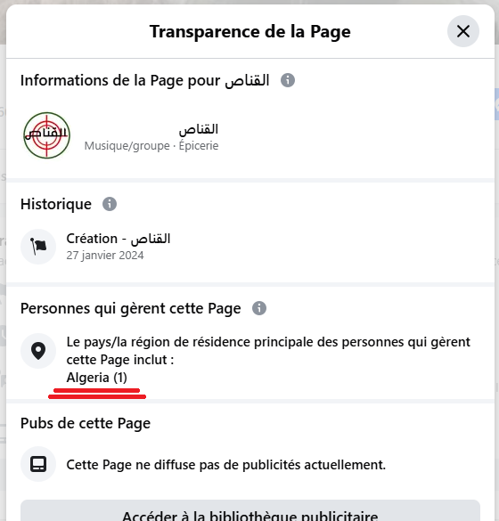 غير أن التحقيقات الرقمية تكشف أن أول من أطلق هذه الرواية لم يكن أي مصدر أوروبي، بل صفحة فايسبوكية جزائرية تابعة لذباب المخابرات الجزائرية تحمل إسم “القناص”. هذه الصفحة نشرت الخبر الكاذب مساء الأربعاء 10 شتنبر على الساعة 22:52 بتوقيت المغرب، أي قبل حوالي بـ 12 ساعة من إعادة تدويره من طرف الريسوني وبيانات “شفافية الصفحات” تؤكد أن الصفحة تُدار من الجزائر، وهو ما يفضح الجهة التي صنعت الإشاعة وروّجتها.