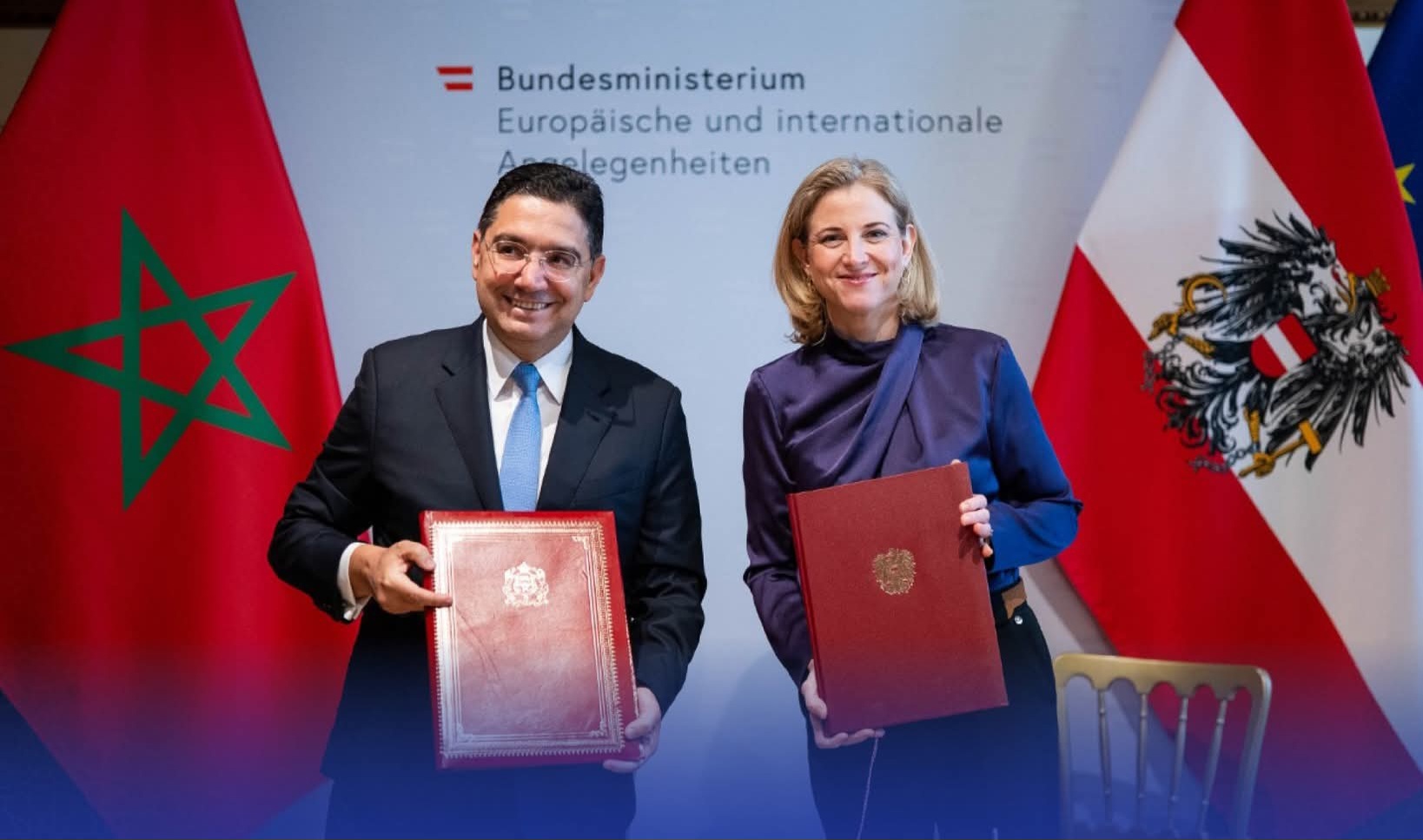 وقع وزير الشؤون الخارجية والتعاون الإفريقي والمغاربة المقيمين بالخارج، ناصر بوريطة، والوزيرة الفيدرالية للشؤون الأوروبية والدولية بجمهورية النمسا،بيات ماينل ريزينغر، اليوم الأربعاء بفيينا، مذكرة تفاهم ترسي الحوار الاستراتيجي بين البلدين.