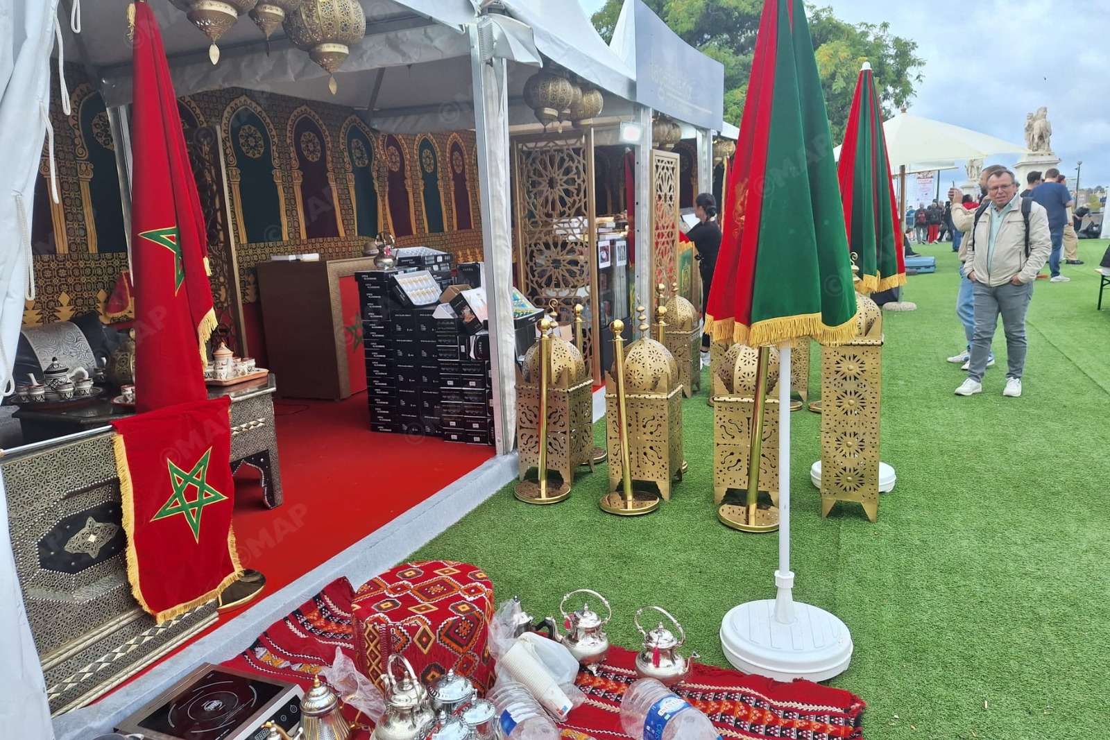 ويدعو الجناح المغربي، المزين بألوان العلم الوطني وزخارف تحيل على كرم الضيافة الأصيل تحت الخيمة التقليدية المغربية، الزوار إلى انغماس دافئ في روح المملكة. فالسجاد الملون، والفوانيس، والزليج، والفخار، والحلويات والأطباق الأصيلة… كلها تجسد أرضا للمشاطرة والشغف وروح الألفة. ويقود هذه المبادرة حسن إيشوان، وهو شاب شغوف بالمطبخ والحلويات المغربية.