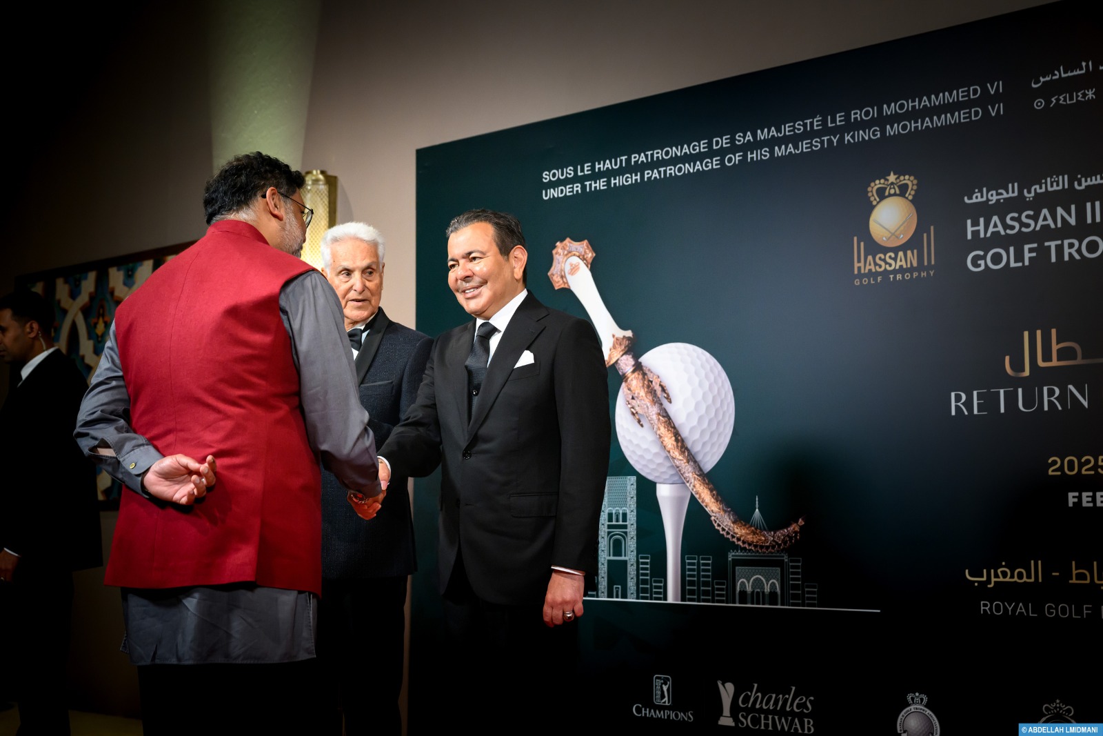 وتقدم للسلام على صاحب السمو الملكي الأمير مولاي رشيد، أيضا، النائب الأول المنتدب لرئيس الجامعة الملكية المغربية للغولف والنائب المنتدب لرئيس جمعية جائزة الحسن الثاني، مصطفى الزين، والنائب الثاني لرئيس الجامعة ونائب رئيس جمعية جائزة الحسن الثاني، حسن المنصوري، ورئيس النادي الملكي للغولف دار السلام وعضو المجلس الإداري لجمعية جائزة الحسن الثاني، عبد الرحمان بوفتاس، وأمين مال جمعية جائزة الحسن الثاني، علي بنسودة، والمستشار المالي لرئيس جمعية جائزة الحسن الثاني، عز الدين بنموسى، والمنسق العام لجائزة الحسن الثاني وكأس للا مريم، ميشال بيسانسناي، والمدير العام للجامعة الملكية المغربية للغولف والمدير التنفيذي لجمعية جائزة الحسن الثاني، محمد العراقي، والمدير المالي للجامعة وجمعية جائزة الحسن الثاني، محمد نوفل بنسودة.