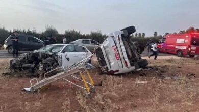 بالصور.. وفاة سائق سيارة إسعاف وإصابة آخرين في حادث خطير ضواحي بني ملال
