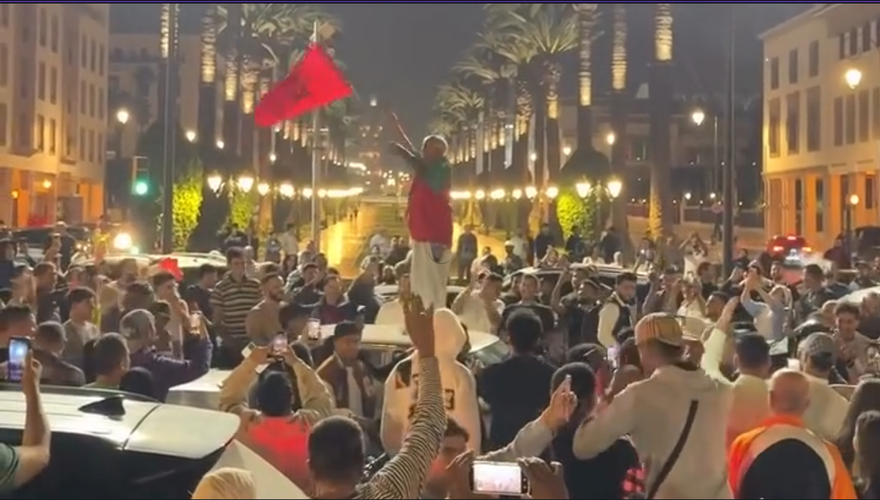وتدفقت الجماهير من مختلف الأعمار ، فخرجوا فرادى وجماعات للتعبير عن فرحة لا توصف ، وهم يحملون الأعلام الوطنية ، مرتدين قميص المنتخب الوطني ،ومنتشين بالانجاز التاريخي الذي حققه أشبال الاطلس ، الذين عرفوا كيف يدبرون أمر هذه المواجهة المصيرية ، التي لم تكن تحتمل القسمة على اثنين.