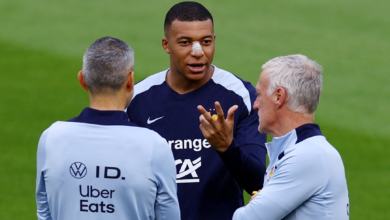تدرب قائد المنتخب الفرنسي لكرة القدم كيليان مبابي، الذي تعرض لكسر في الأنف، منفردا اليوم الأربعاء في بادربورن، قبل يومين من مواجهة القمة ضد هولندا في