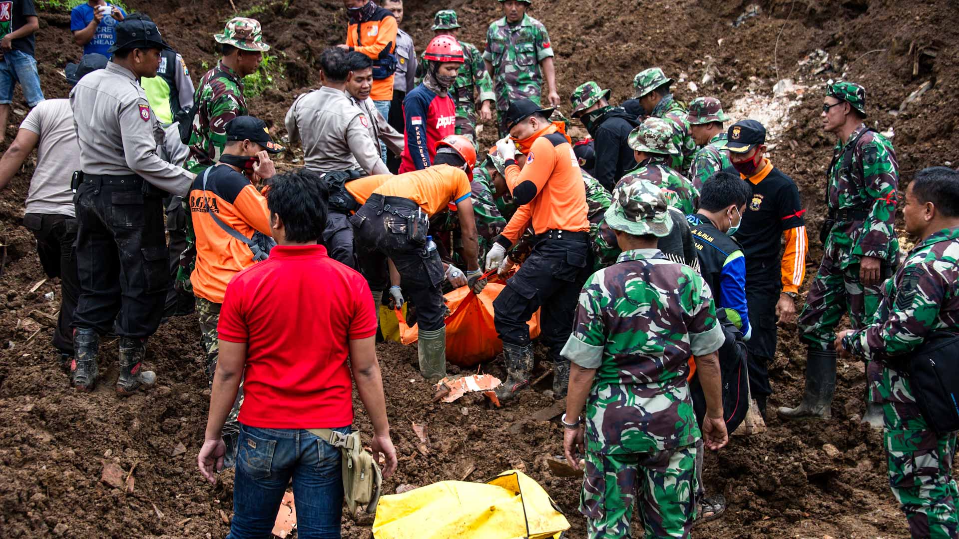 عشرات القتلى والجرحى في انزلاق أرضي بإندونيسيا
