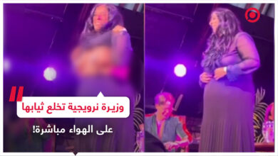 بالفيديو.. وزيرة نرويجية تتعرى أمام الجمهور وتظهر ثدييها لهذا السبب !
